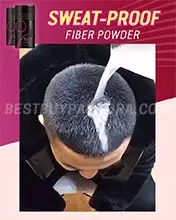 Hair Growth Fiber designed to resist wind, rain and sweat by absorbing moisture and excess oil in the scalp and hair roots.