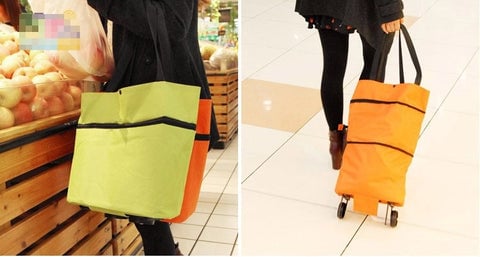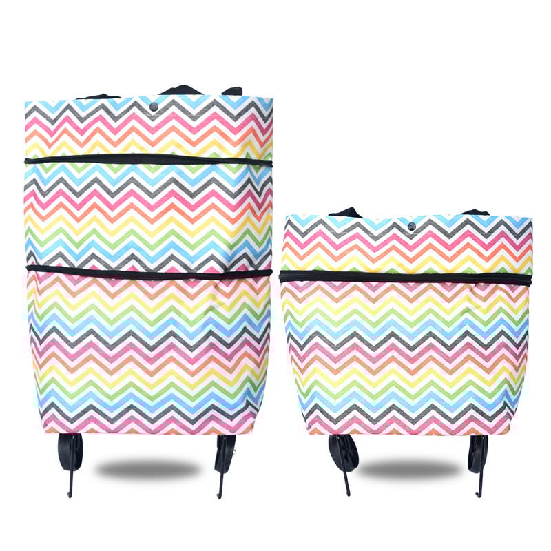 - Multi-Purpose - Folding Shopping Trolley on Wheels for all your needs for shopping, travel, vacation, camping, hiking, beach games, picnics, luggage, school supplies, and many other uses. This folding shopping cart will be the most powerful helper especially when going back to school and out shopping! A stylish bag for shoppers, students, employees and more.